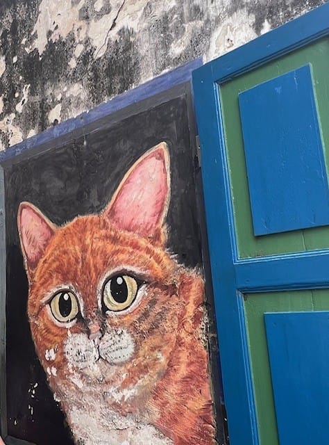 Cat murals are popular in the streets of George Town. Artists for Stray Animals (ASA) painted the 12 murals to raise awareness about abandoned and stray cats.